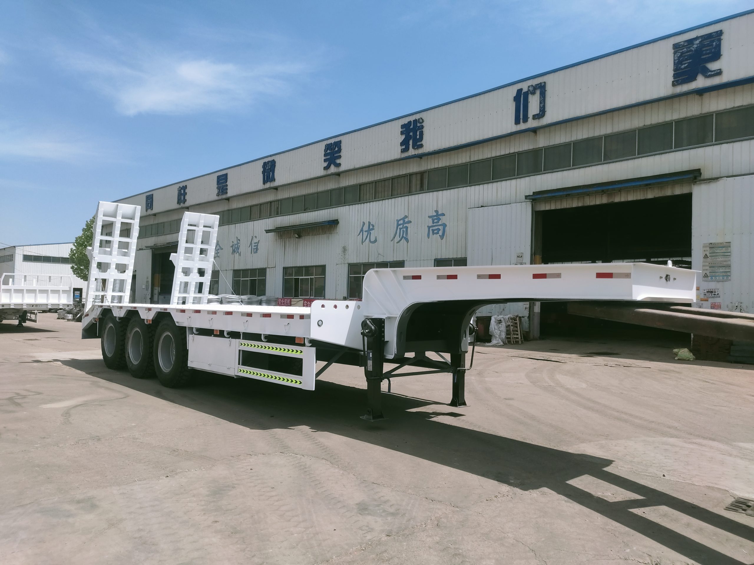 The customer from Burkina Faso has placed an order for three 3-axle low-bed semi-trailers, intended for transporting construction equipment such as excavators and loaders, with a load capacity requirement of 60 tons.